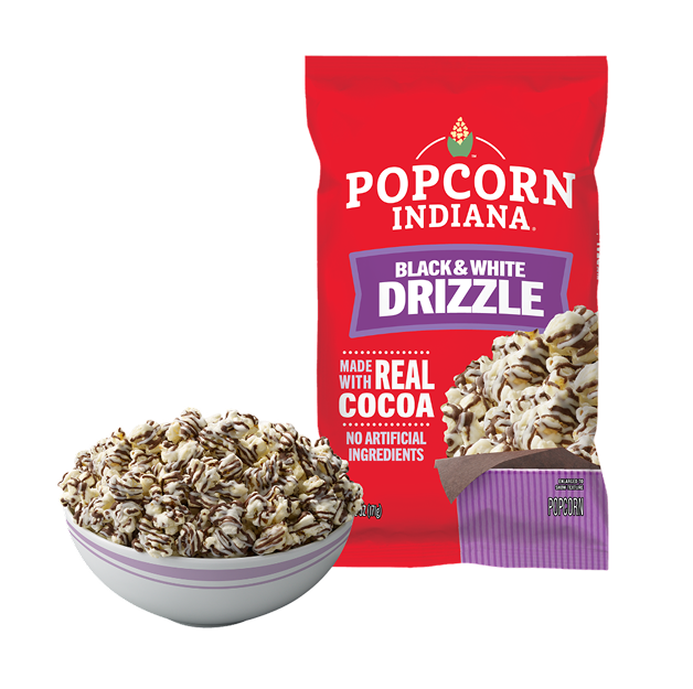 A fan-favorite for a reason, our Black & White Fudge Drizzle Popcorn delivers rich chocolate flavor in every bite to satisfy all your sweet and salty cravings. We drizzle real cocoa over our classic sweet and salty kettle corn using simple, quality ingredients for a flavorful, feel-good snack everyone can enjoy. Real ingredients. Real delicious.